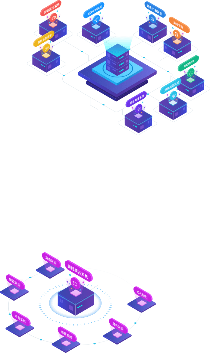 將景區(qū)基礎(chǔ)數(shù)據(jù)作為 貫穿數(shù)據(jù),財務(wù),業(yè)務(wù)的主線,打破系統(tǒng)之間壁壘,數(shù)據(jù)之間的孤島,實(shí)現(xiàn)各子系統(tǒng)數(shù)據(jù)融合互通。